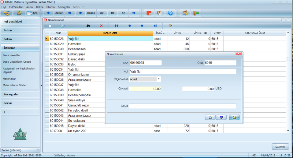 "ARBAY: MALLAR (Analitik Uçot)" proqram təminatı fəaliyyət sahəsindən asılı olmayaraq kiçik müəssisələrdə, marketlərdə, anbarlarda təsərrüfat maliyyə-mühasibat uçotunu avtomatlaşdırmaq məqsədi ilə aşağıdakı modulları özündə cəmləşdirir: